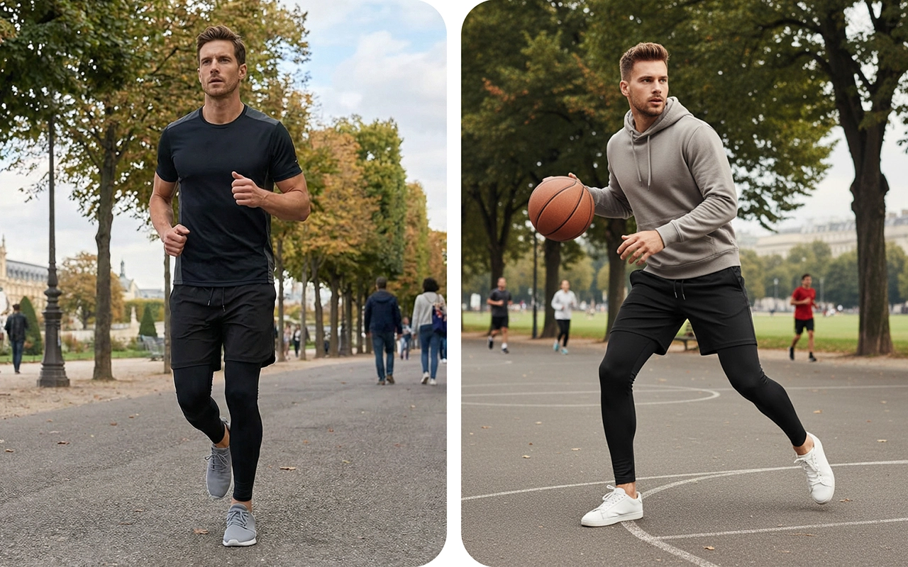 Wore these to the gym and soccer practice. Really flexible and breathable. Nothing tugs or sticks. The zipper pocket is my favorite part.