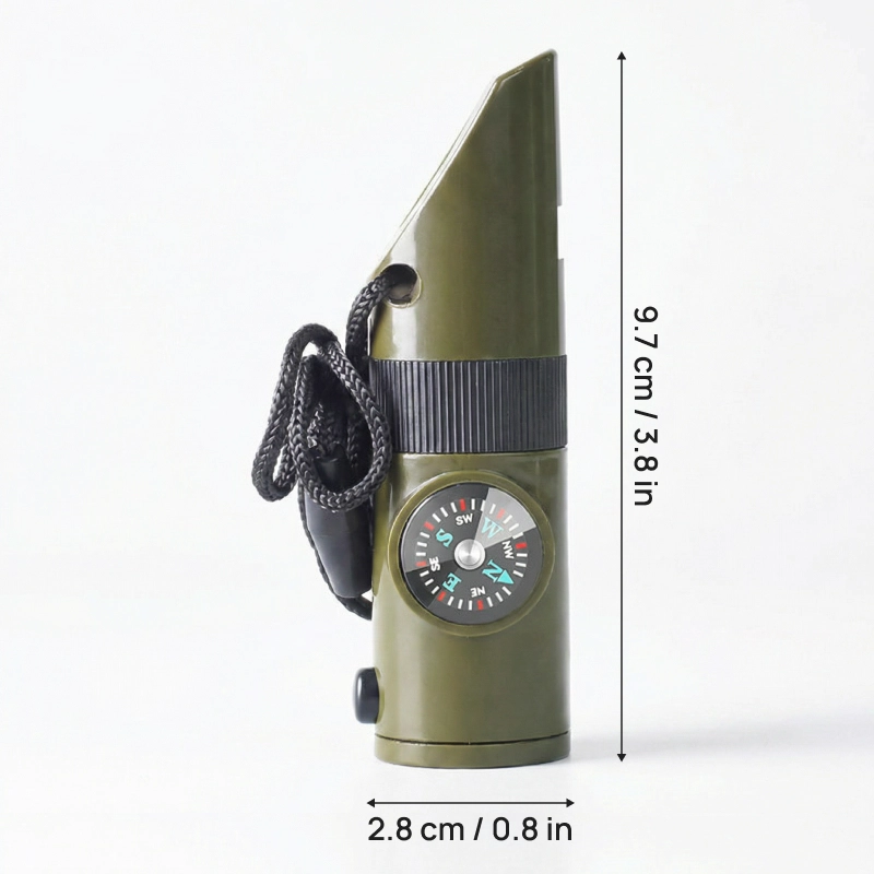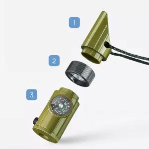 I like simple gear, and this whistle covers a lot. The small storage tube holds water tabs and the compass stayed accurate during a three-day trek.