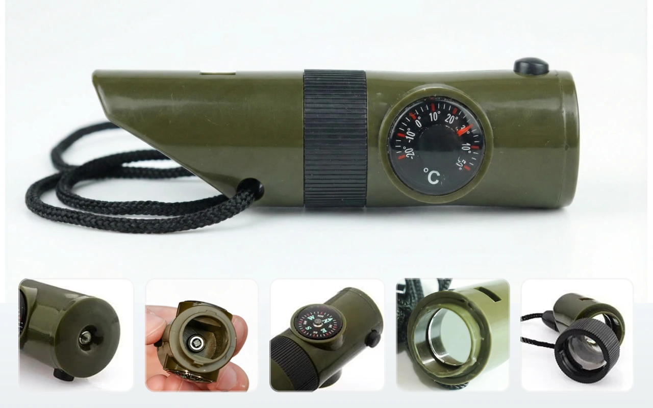 Bought the survival whistle for solo camping trips. Love having the thermometer, tiny storage, and light together so I’m not digging through my pack.