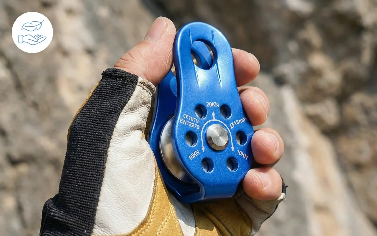 Smooth sheave lets ropes glide gently every time. Reduces friction for faster, safer progress on steep walls.