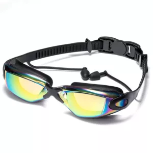 These swimming goggles are designed to help you stay on top even in the toughest of waters. Their unique soft frame moulds to the face for a comfortable and secure fit and a hypoallergenic silicone gasket evenly distributes the pressure. The skin-friendly silicone head strap with an adjustable buckle is very easy to use — you can easily put the goggles on and take them off with only one press. The built-in earplugs keep water out of your ear canal. Durable anti-fog lenses offer UV protection and clear underwater vision, while eliminating glare so you can keep an eye on the competition. Thus, these expertly crafted swimming goggles is an ideal choice for professional and recreational swimmers as they offer the best protection possible.