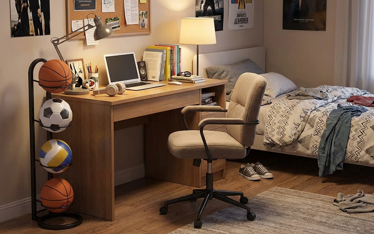 I like how slim this rack is. It tucks beside the couch, keeps our family basketball handy for evening games, and blends in with the room nicely.
