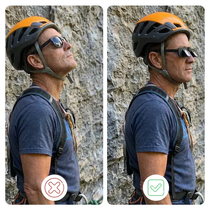 Climbing can strain your neck and distract your focus quickly. Threo glasses let you keep your attention fixed where it matters most. The lightweight design fits easily over most sunglasses or prescription frames. See every step clearly without missing any action. Experience safer climbs with less discomfort.