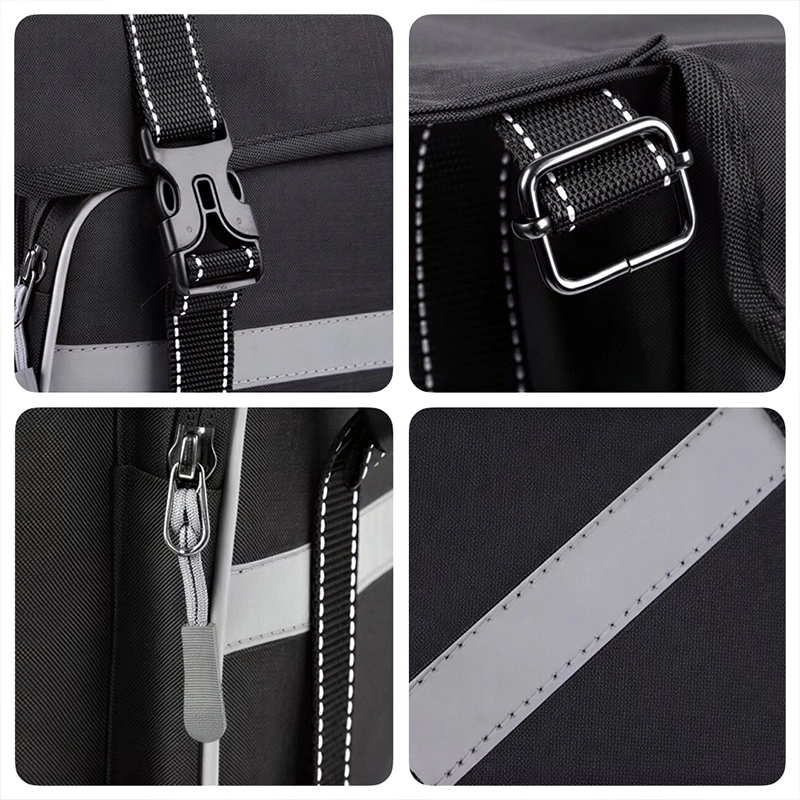 Reinforced straps fix the bag firmly to your rear rack. The design prevents sliding or swaying while cycling. You can ride confidently on bumpy or uneven terrain.