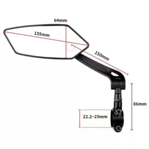 This bike rear view mirror fits typical models of bikes and other vehicles with handlebars measuring 22.4 to 25 mm in diameter. For instance, it suits electric, mountain, and city ones, as well as beach cruisers and even scooters. You can mount the rear view mirror for bike on one of the handlebars, on both sides simultaneously, or under the handlebars if you want. The installation procedure is straightforward and doesn’t require specific instruments or skills.