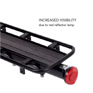 Designed with W-shaped sidebars, THREO bike rear rack will protect your luggage from scratching by the wheel or spokes. A detachable red rear reflector lamp increases visibility and protects your riding safety at night or on a rainy day. With this seat luggage rack, you can easily carry what you want with you when you go out.