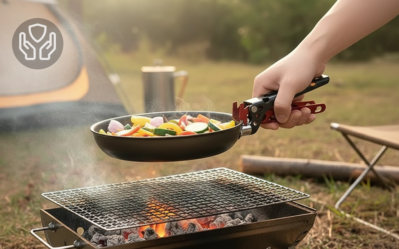 I cook outside a lot, and the holder makes everything safer. It’s so light I barely notice it in my backpack.