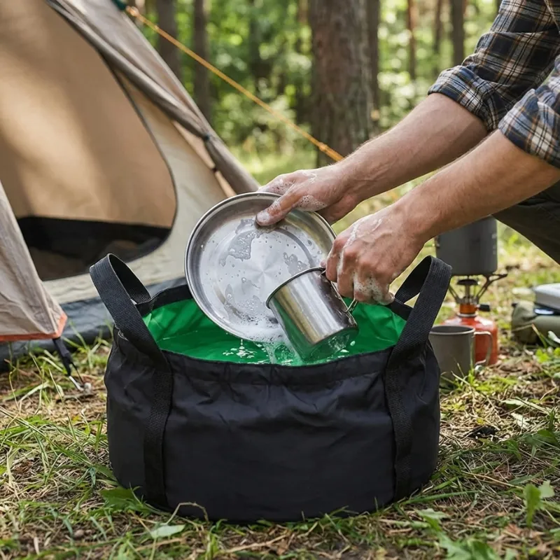 Used this on a fishing weekend. It held a good amount of water for cleaning gear and washing hands, then folded away so small I almost forgot it was there.
