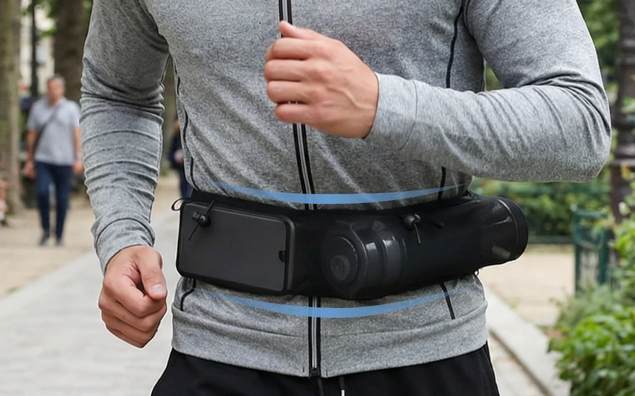 Been using this mesh band every morning, love how my phone and snacks fit without bouncing around. Super comfy and forget I have it on!