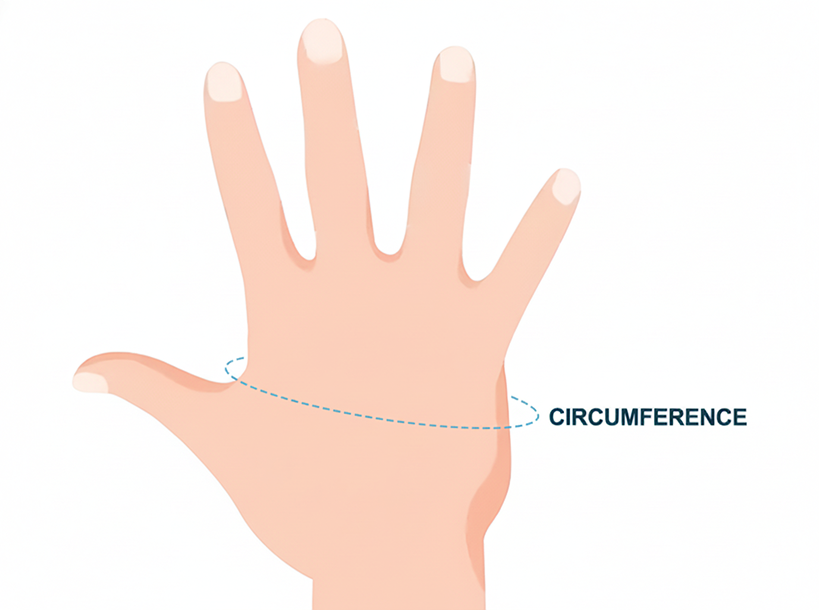 - 1. Wrap the measuring tape around your palm, just below the knuckles.
