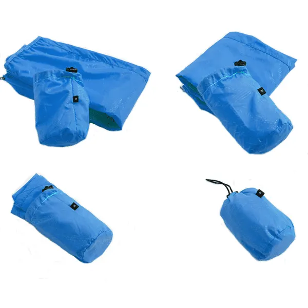 Made from thin and lightweight polyester, our jacket rolls up to the size of a bottle. Pack it with ease in a pouch and put it in your bag, it won't take up much space or weigh you down.