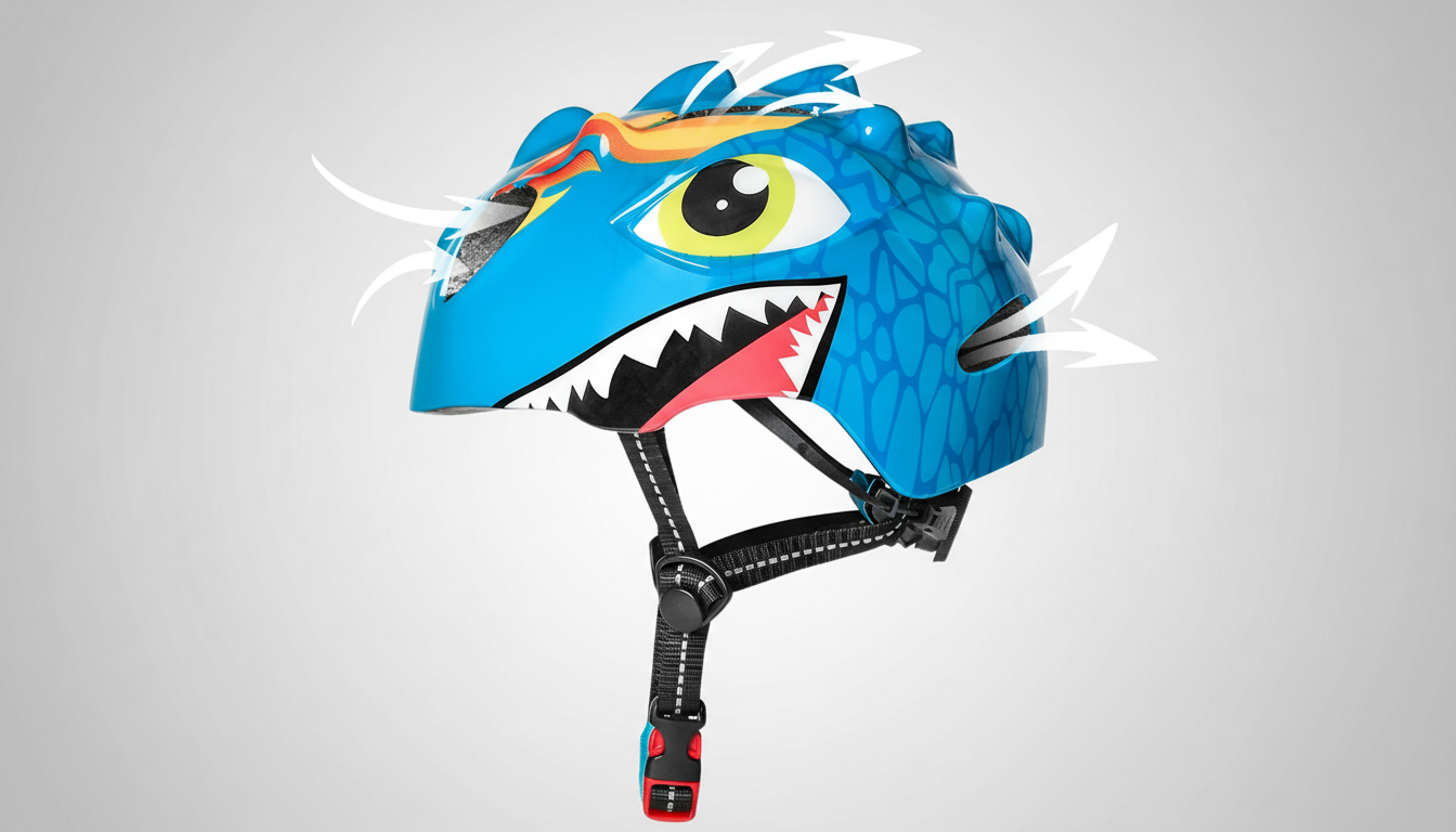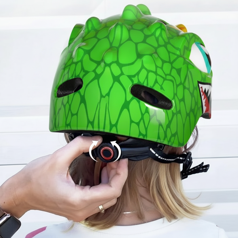 Dinosaur helmet stays put on my son’s head and has already handled a few falls without a scratch. Highly recommend for younger riders.