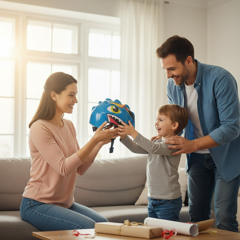 My little brother couldn’t wait to show off his new dino helmet to his friends. Now he never forgets it at home.