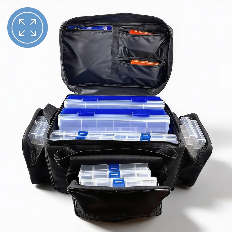 This bag helps me pack fast. The zippers work smoothly, and organizing my lines and hooks is a breeze now.