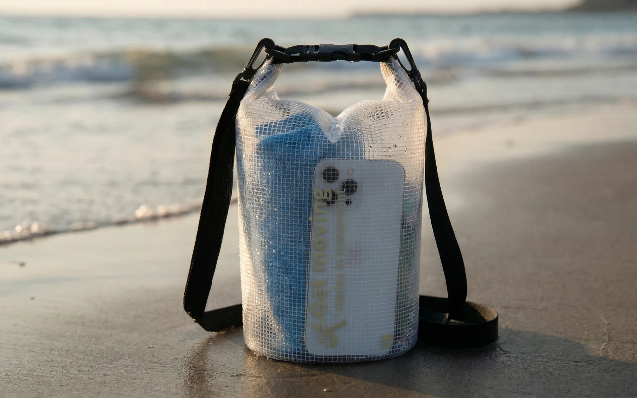 Items stay dry thanks to the waterproof mesh fabric. No splashes or sand can get inside, so belongings remain secure.