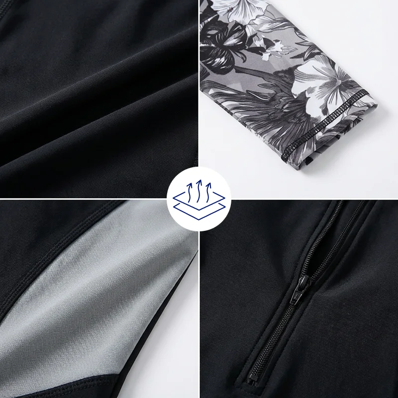 Took this suit on vacation. Jumped in and out of the water and it dried quickly. Plus, my arms didn’t get burned at all.