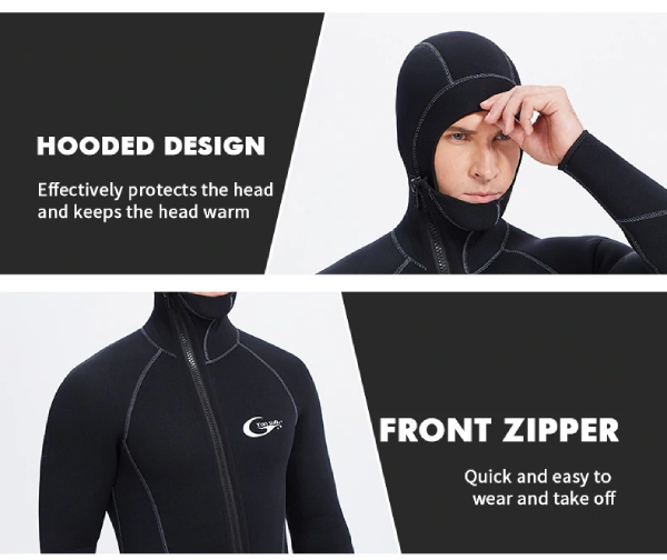 Key Benefits of the Men’s hooded wetsuit front zip