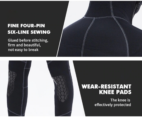 Wear-resistant knee pads effectively protect your knees from injuries. Another feature of this wetsuit is that protects you from sun burning and skin scratches by marine life in the deep sea. You won’t damage your skin by water pollution.