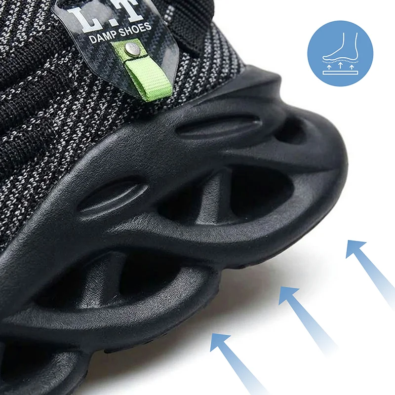 I wear these sneakers for my warehouse job all day. They feel light, comfy, and my socks no longer end up soaked with sweat.