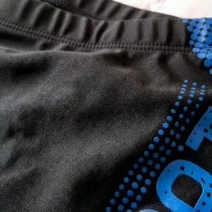 I wear these for laps at the gym pool. They move with my legs, no rubbing, and by the time I’m home they’re almost completely dry in my bag.