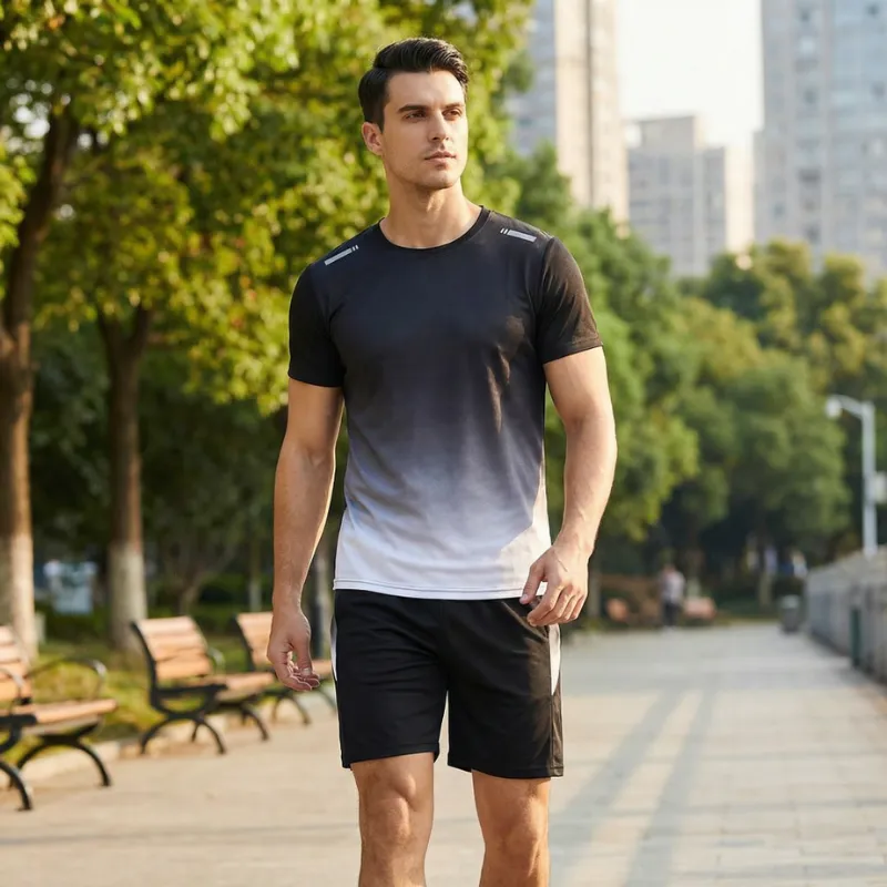 I wear this kit for basketball and jogging. The tee doesn’t ride up, shorts don’t twist, and I’m not weighed down by sweat after games.