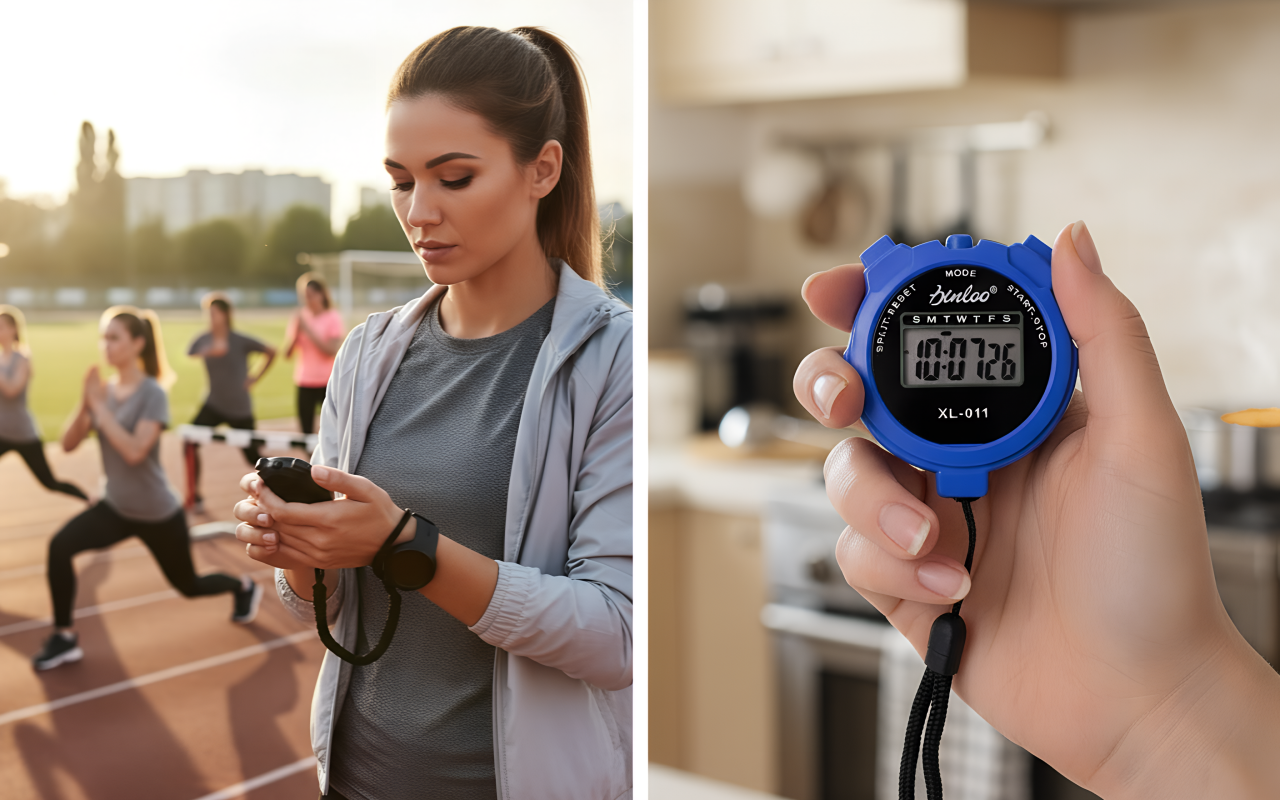 Quickly switch between stopwatch, timer, and counting modes. One compact device covers sports, homework, or kitchen needs.