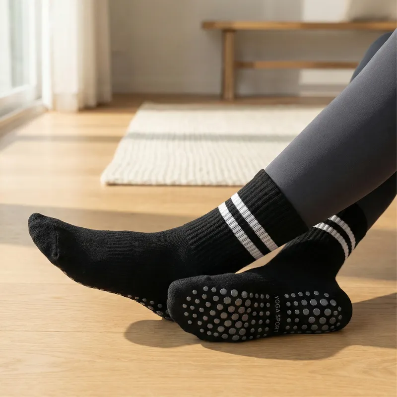 Silicone dots cover the bottom for maximum traction support. Each step stays steady, whether practising yoga or pilates.