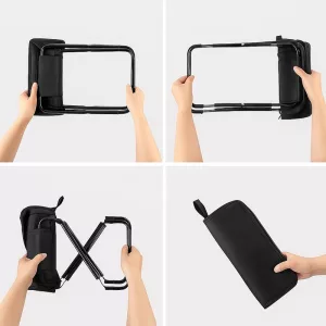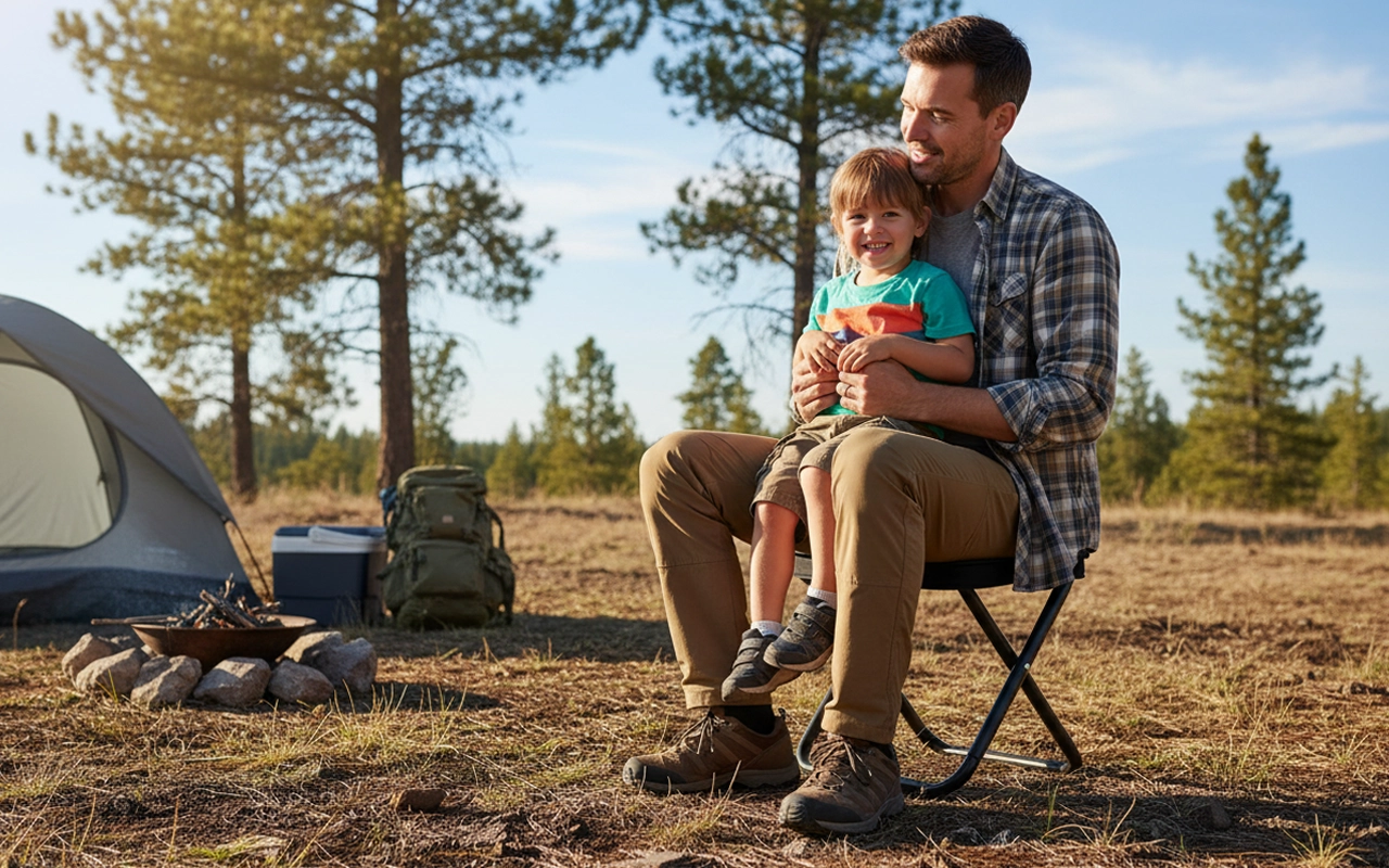 Camping is better with this folding seat. Doesn’t take up any space and holds even my big cousin. Feels super safe to sit on.