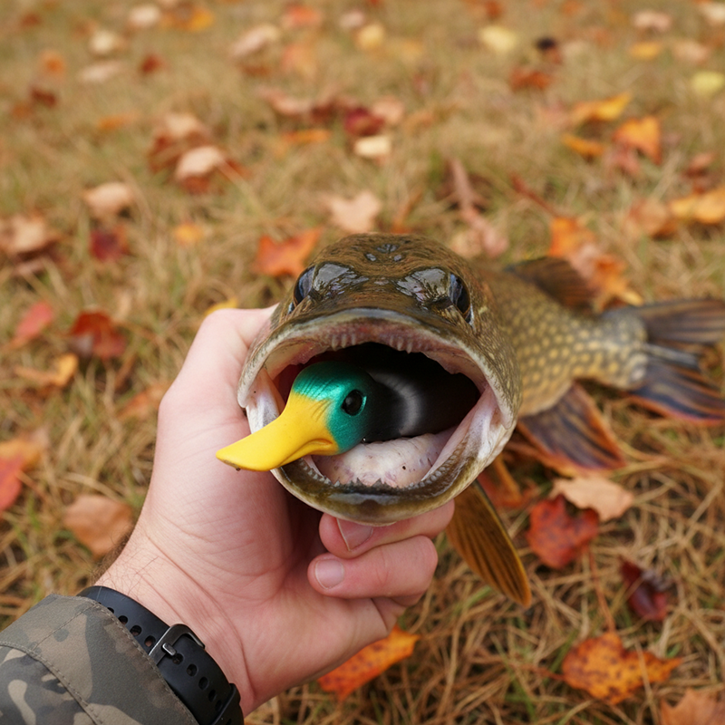 Hooked into a fat pike on my first cast! The duck kept spinning and splashing, which made it super fun to use. Definitely using it next time.