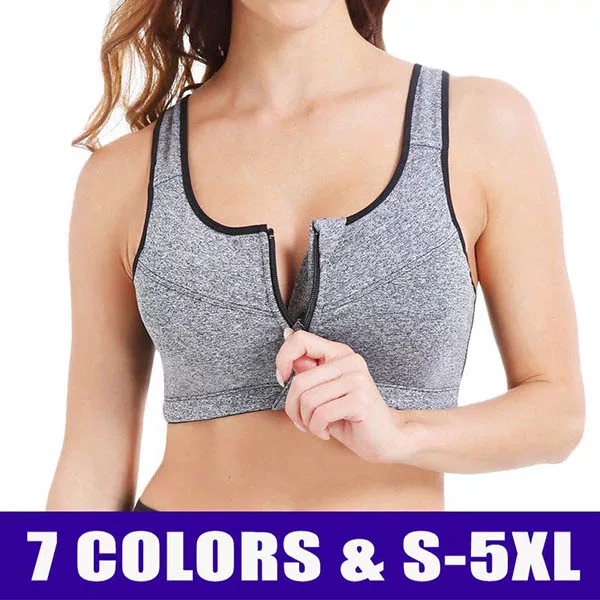I-shape back shoulder strap effectively protects against shock and prevents the bra from shifting or slipping off. The bra has an anti-slide zipper and hooks that protect from sliding down when doing exercise. Adjustable support band in the back, like an everyday bra with 3 sets of clasps, allows adjusting the cup size.