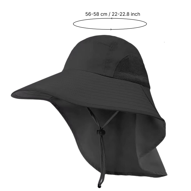 Wide-brim fabric helps block strong rays and avoid burns. The extended flap gives extra coverage for your neck and ears.