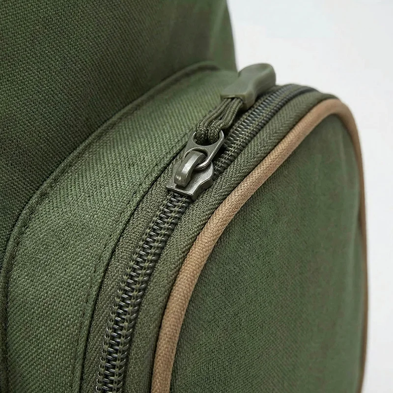 Got this for my dad and he uses it every fishing trip! The zippers feel strong, and he says it sits nice even when full.