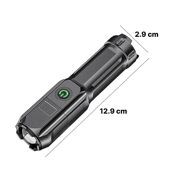 An intense light beam illuminates even the darkest places, making it perfect for outdoor activities such as camping, hiking, and hunting.