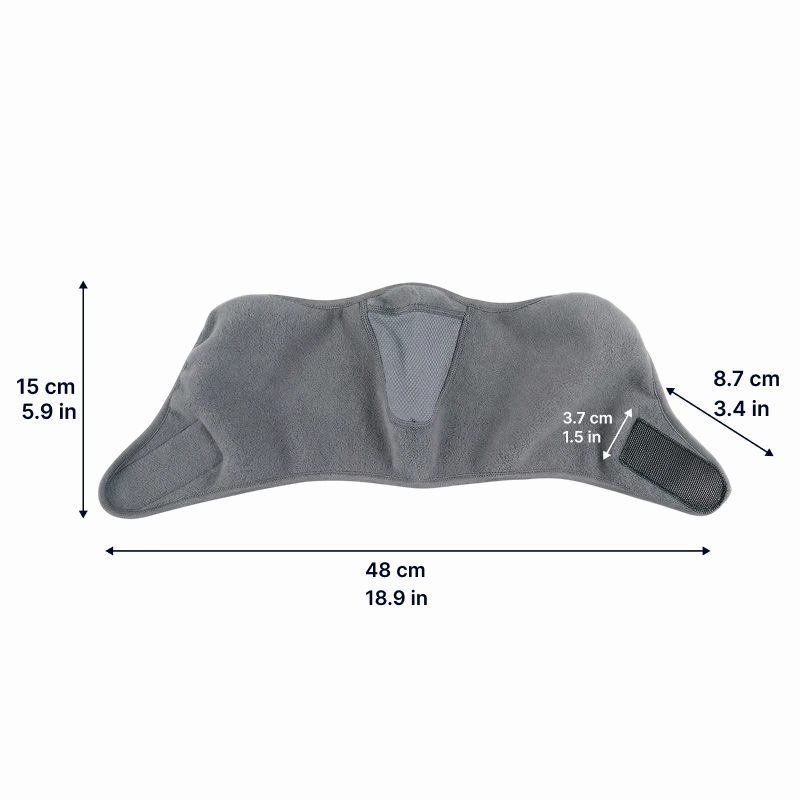 Got this for my husband who works outside all winter. He says the fleece feels gentle, covers everything important, and the back strap keeps it in place.