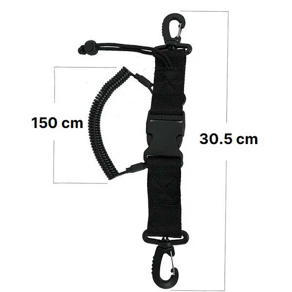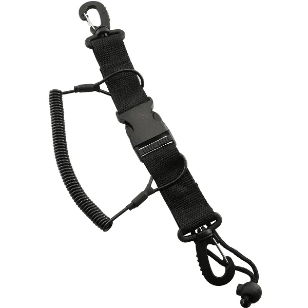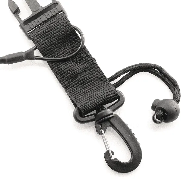 The lanyard can be worn around the wrist or attached to your BCD for added convenience and accessibility. Equipped with a quick-release buckle, it can easily be attached to various types of gear.
