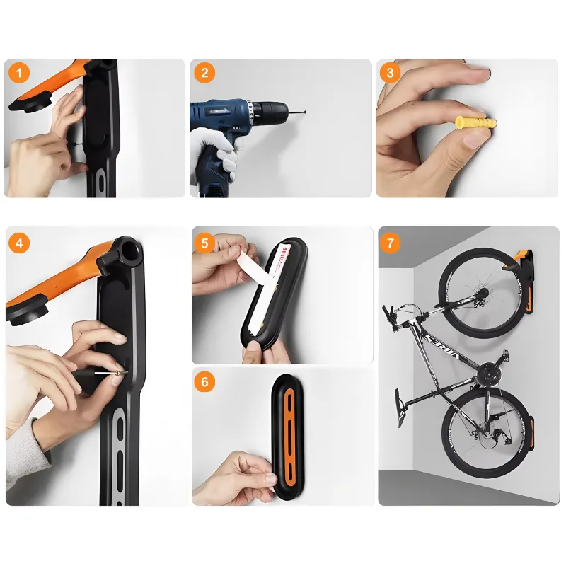 This bicycle wall mount is built to withstand heavy weights without bending. It stays stable on any surface, ensuring long-lasting and safe use.