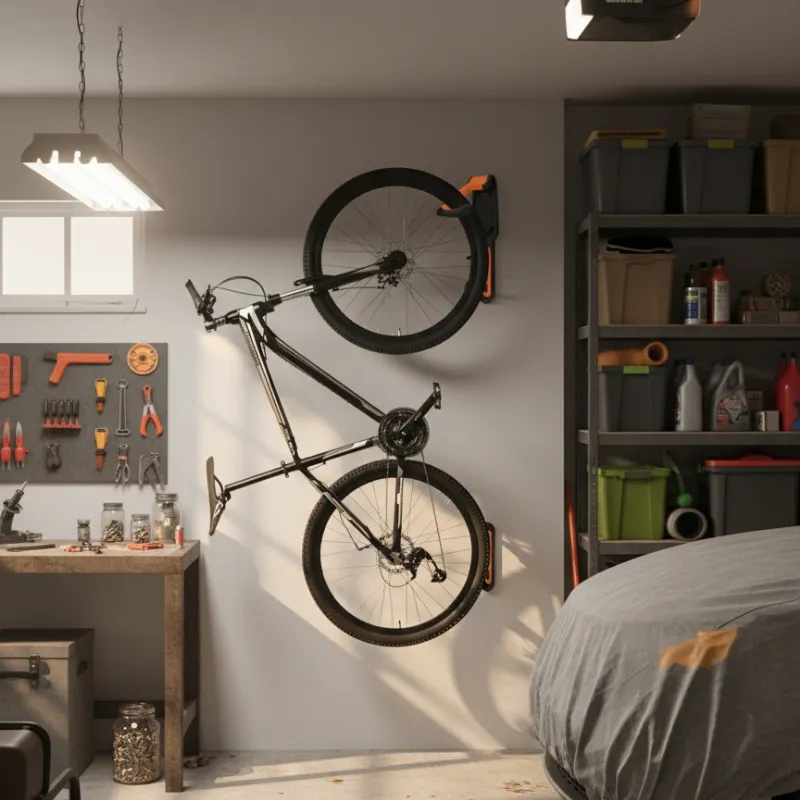 This rack keeps my garage way more organized. It was simple to put up and even fits my son’s mountain bike. I love having extra floor space now.