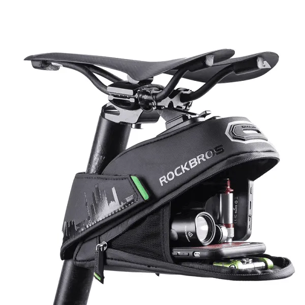 This saddle bag is a game-changer! It fits snugly under the seat and doesn’t affect my ride balance at all. Plus, it keeps everything inside dry even on the rainiest days. Definitely worth the purchase.