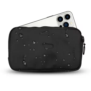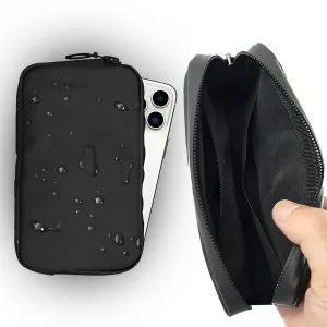 My phone fits in easily, and I still have room for earbuds and my wallet. No water got inside, even when splashed.