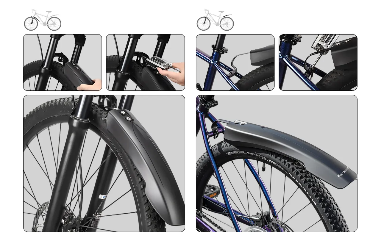 Our mudguards are designed for quick installation, taking just a few minutes. They fit securely on most mountain bikes and stay firmly in place during rides.