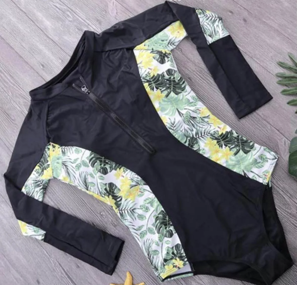 Absolutely love this swimsuit! Long sleeves are perfect for sun safety. Zipper makes it easy to wear. Prints are fun, and it’s super comfy for the beach.