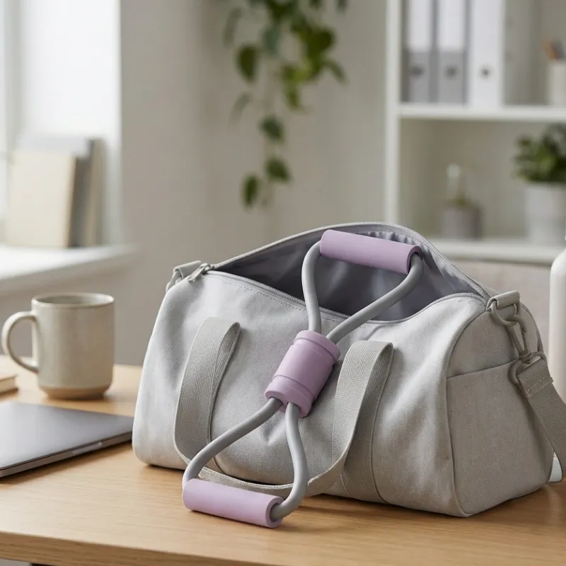 Carry Threo Resistance Bands anywhere for quick sessions anytime. Great for busy days, holidays, or use at your office desk.